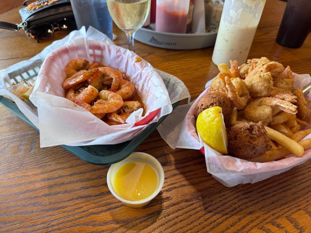 No meal is complete without a few sides and desserts, and Hole In The Wall Seafood And Raw Bar has plenty to choose from. The Grouper Basket comes with crispy fries and hush puppies, a classic Southern side that pairs perfectly with the fried seafood.